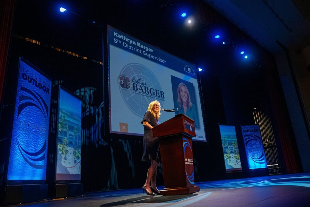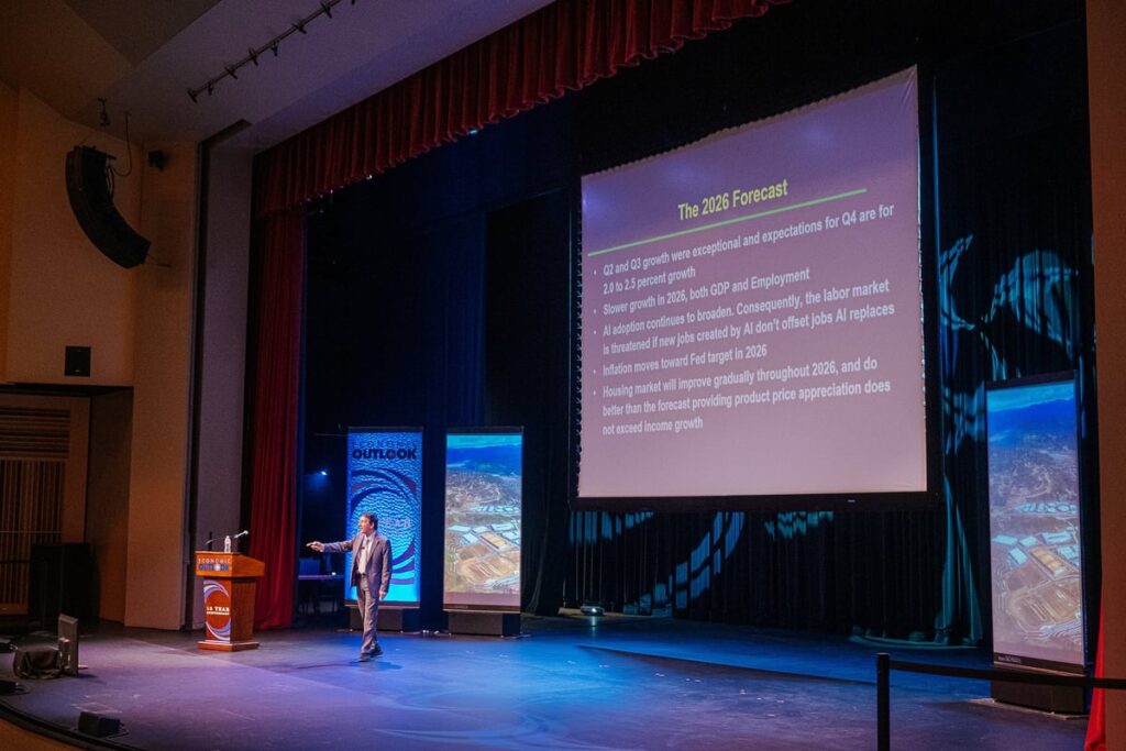 Technifex Products provided four 4×10 FlowScreen® units for the Santa Clarita Valley Economic Development Corporation’s 2025 Economic Outlook Conference. Two FlowScreens highlighted the event’s logo in vibrant vinyl graphics, while the others enhanced the stage experience as dynamic rear-projection displays.